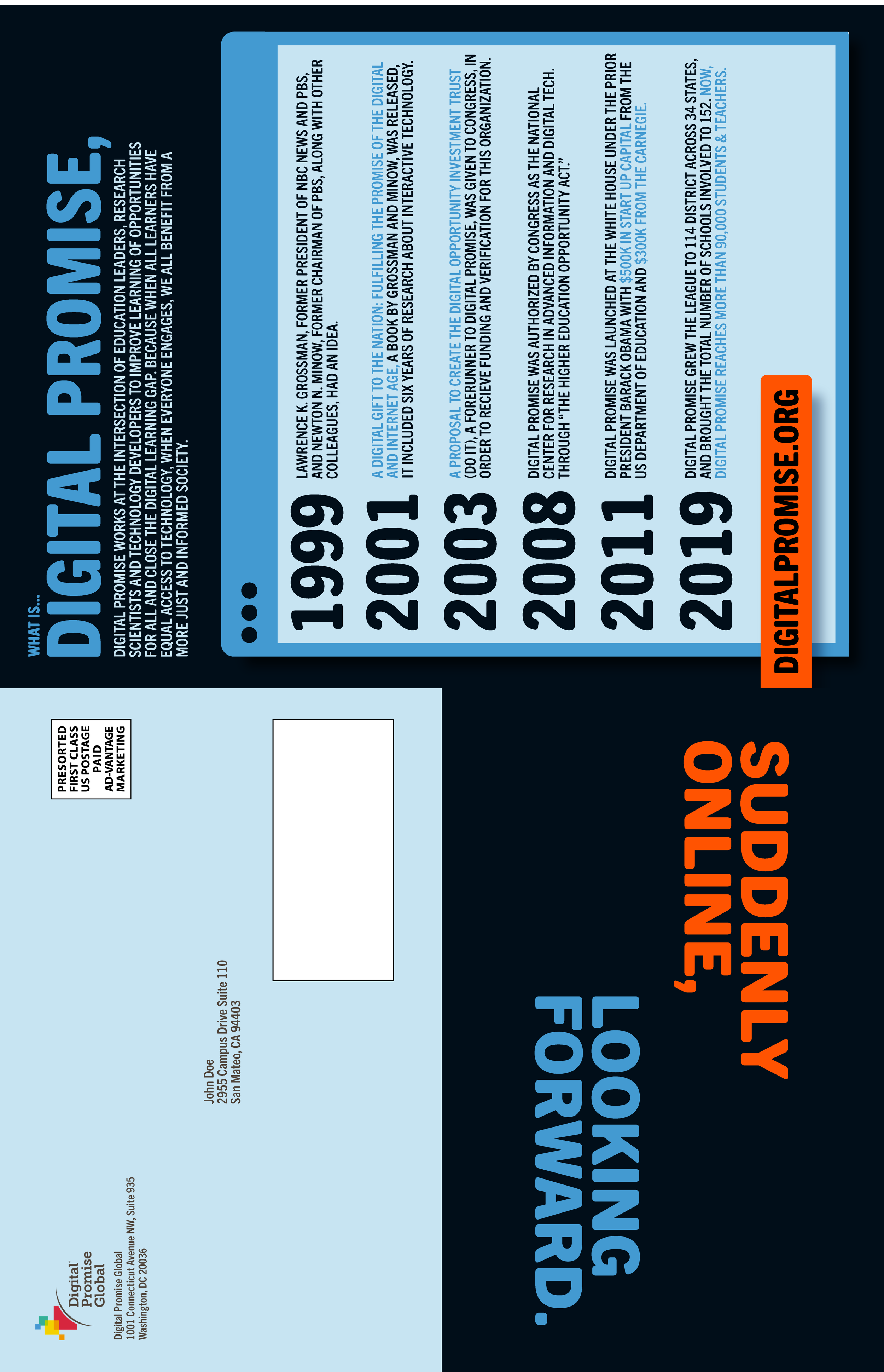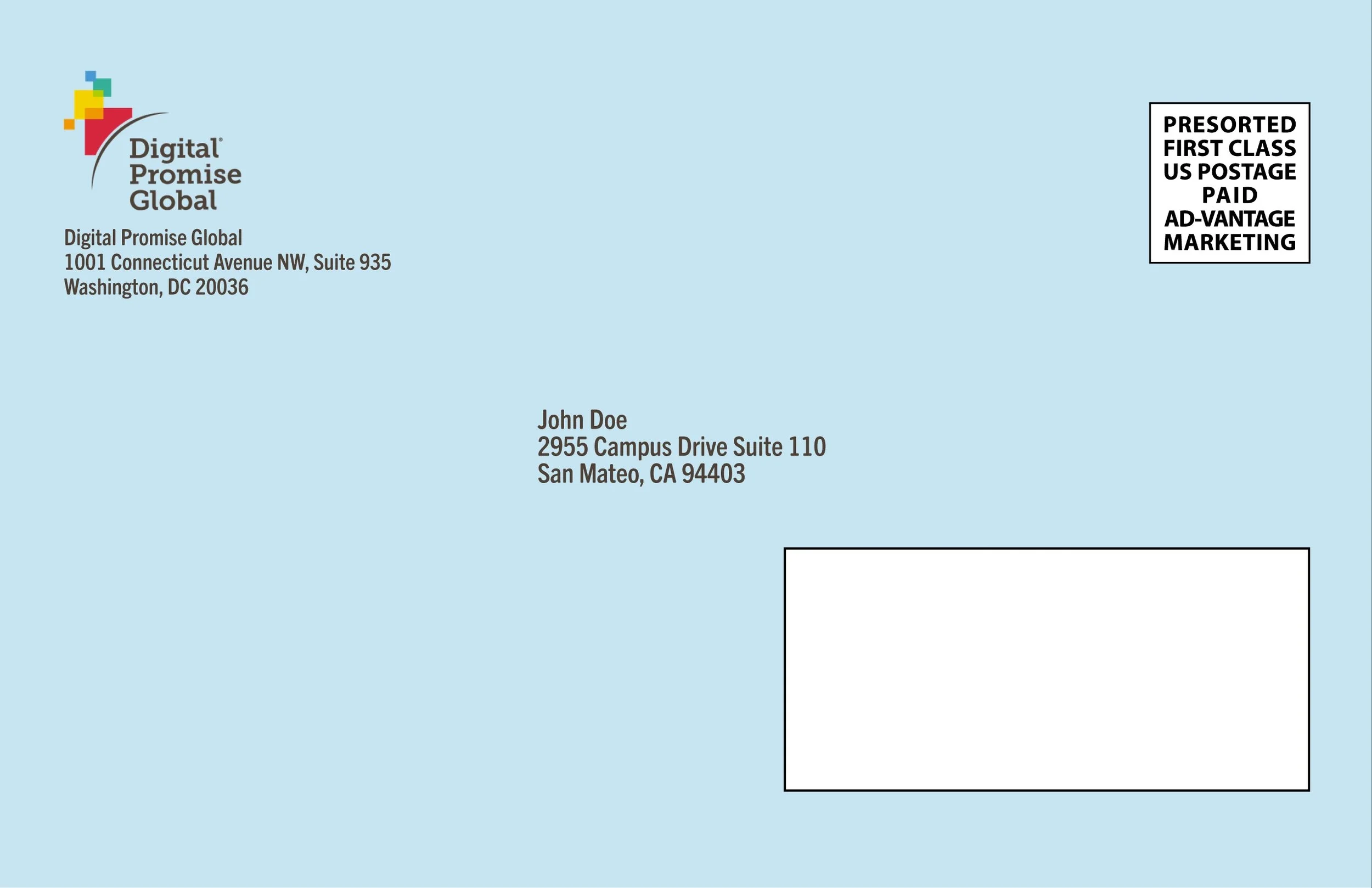 A Digital Promise mailable infographic including an infographic, animation, poster and either sides of the mailing envelope.