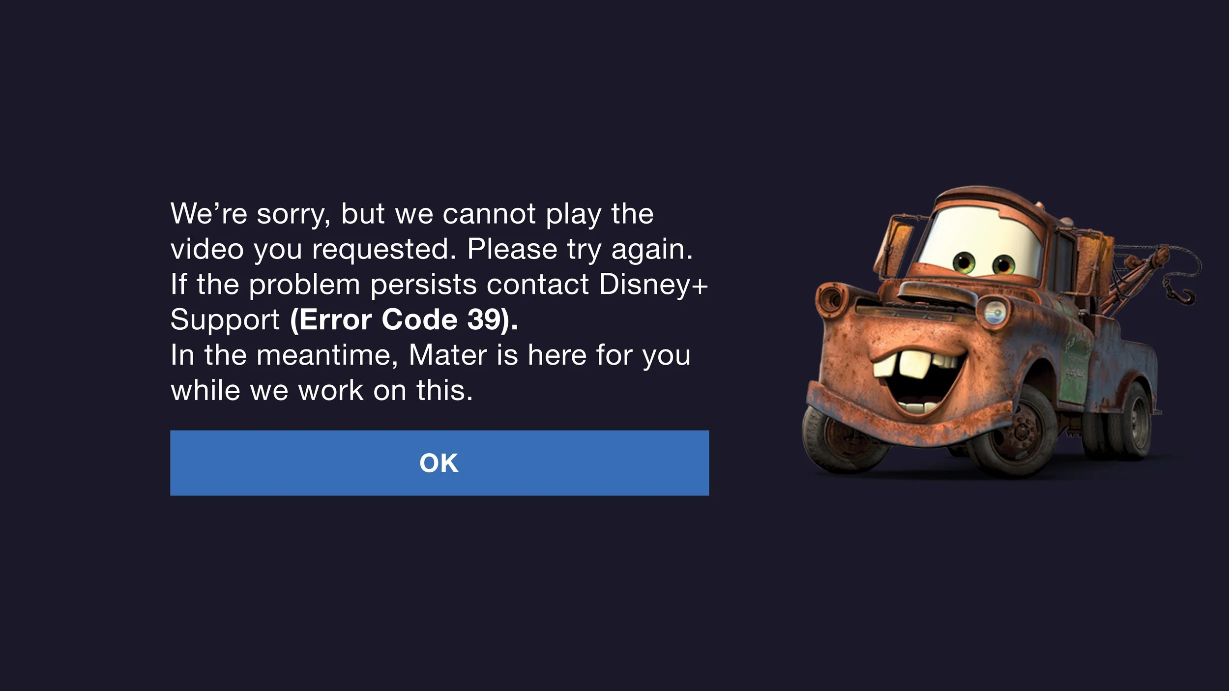 Disney Plus Error Screen V 03: Mater