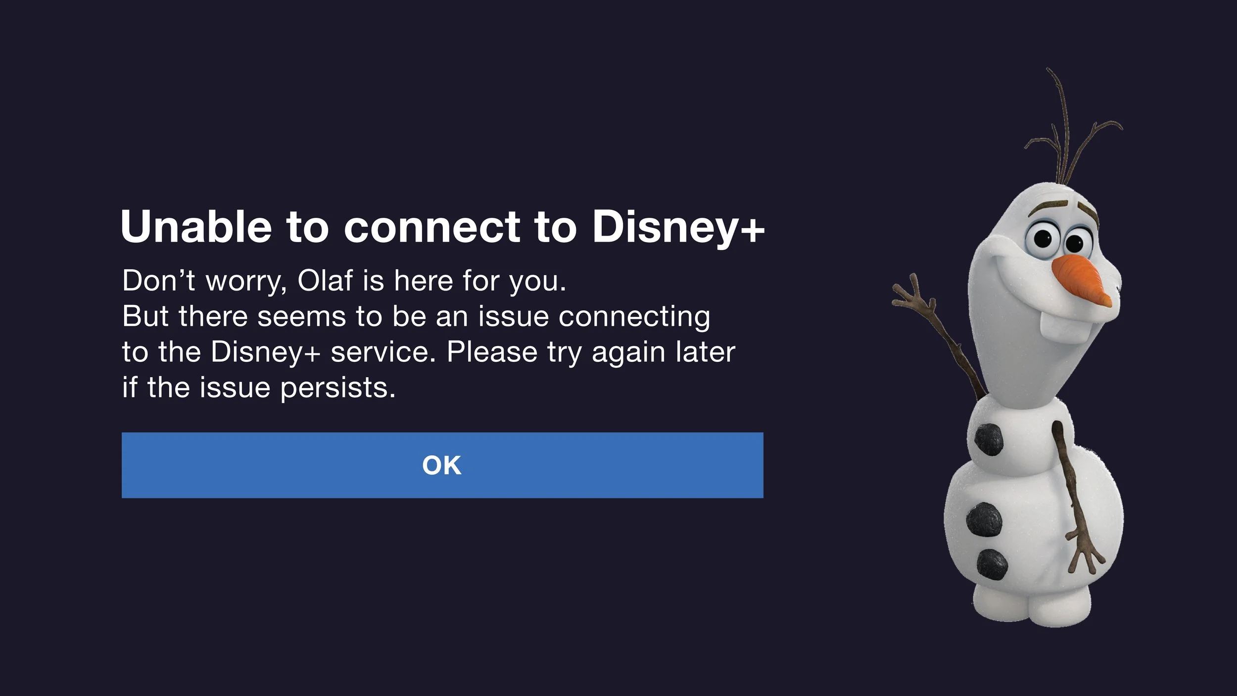 Disney Plus Error Screen V 01: Olaf