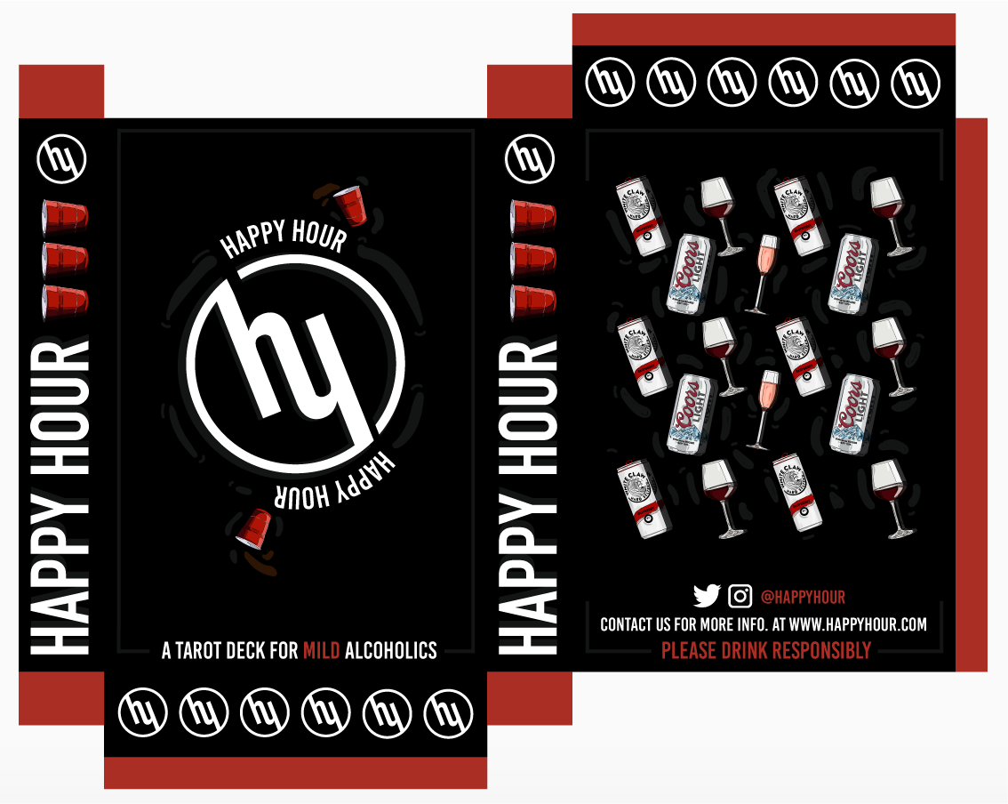 An illustrative unconventional tarot deck design including branding, examples of cards, packaging, a motion graphic and supporting merchandise.